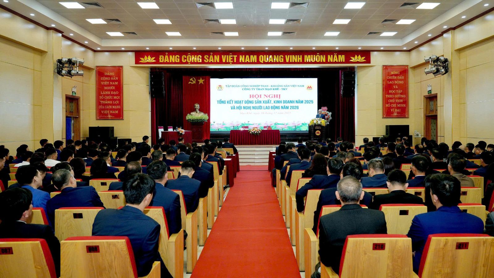 Chiều ngày 16/12, Công ty Than Mạo Khê - TKV tổ chức Hội nghị tổng kết hoạt động sản xuất, kinh doanh năm 2025 và Hội nghị người lao động năm 2026. Dự hội nghị có các đồng chí: Vũ Anh Tuấn, Phó Bí thư Đảng ủy, Tổng giám đốc Tập đoàn; Nguyễn Văn Tuân, Phó TGĐ Tập đoàn; Nguyễn Trung Hiếu, Phó Chủ tịch Công đoàn TKV; đại diện các Ban chuyên môn Tập đoàn; lãnh đạo Đảng ủy, Ban giám đốc, Công đoàn, Đoàn TN, Hội CCB Công ty; các tập thể, cá nhân xuất sắc tiêu biểu và 200 đại biểu, đại diện trên 4.050 CB, CN, NLĐ toàn Công ty…
